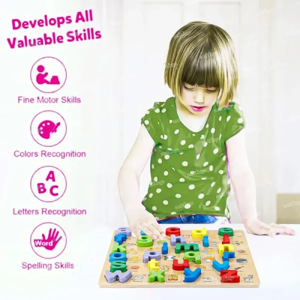 - Rezolvarea problemelor: Copiii trebuie să potrivească fiecare literă la locul potrivit în puzzle, dezvoltând astfel abilitățile lor de rezolvare a problemelor și coordonare ochi-mână.