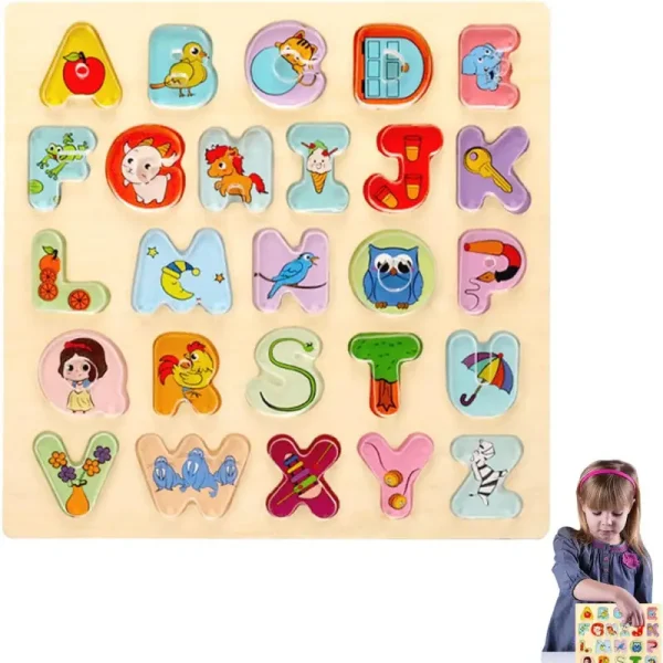 Fiecare piesa din puzzle are scris pe plansa cuvantul potrivit, astfel micutul poate potrivi cu usurinta formele literei, nu doar dupa conturul piesei, ci si dupa aspectul ei.