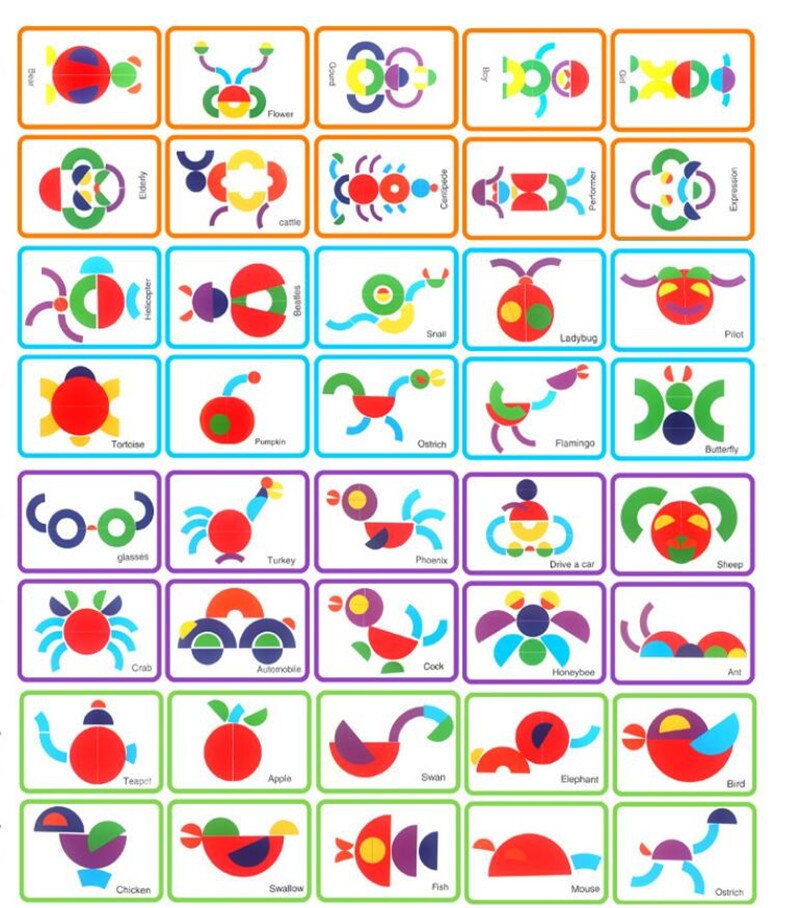 Puzzle Tangram Montessori Forme Geometrice Lemn