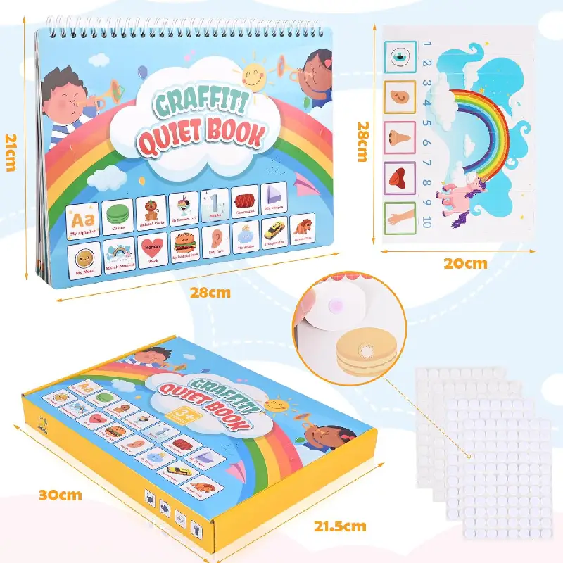 Cartea educativă Quiet Book cu stickere reutilizabile este una dintre cele mai apreciate activități pentru copiii de 3–6 ani — o combinație perfectă între joacă, învățare și dezvoltare Montessori.