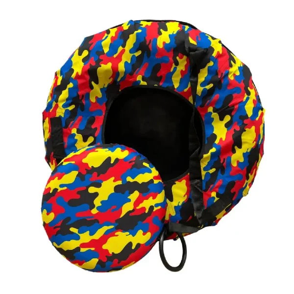 Pregătește-te de distracție maximă pe zăpadă cu Roata Gonflabilă Tricoloră pentru sanie!