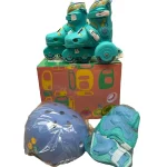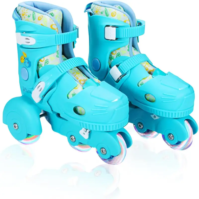 Culoarea turcoaz veselă, prinderea sigură cu catarame și roțile dispuse pentru stabilitate fac din aceste patine alegerea perfectă pentru micii aventurieri.