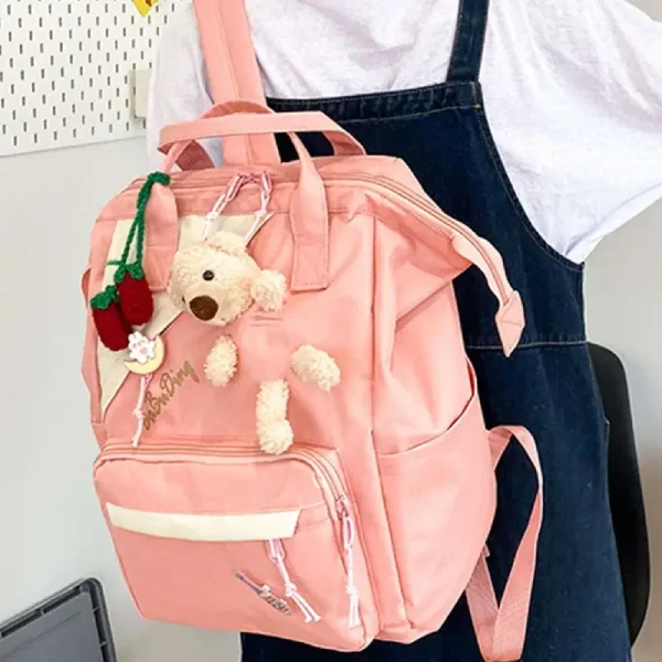Rucsacul impresionează cu un design modern și elegant, completat de culoarea roz delicată, care adaugă un plus de feminitate și stil oricărei ținute.