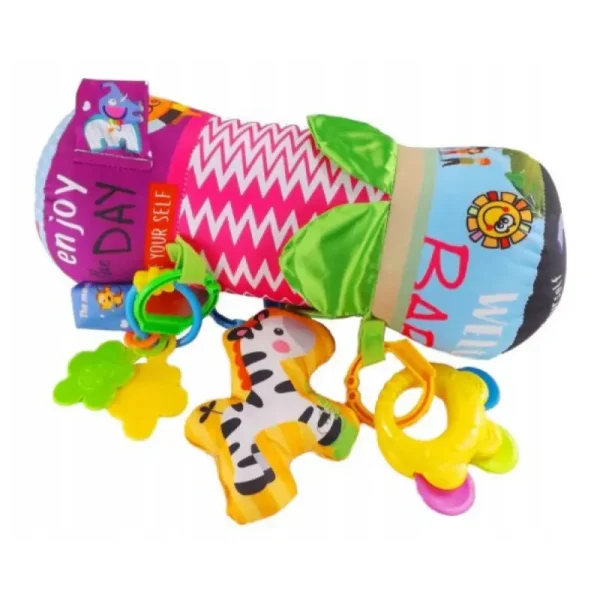 Cu designul său viu colorat, ruloul prezintă personaje drăgălașe, precum girafa și zebra, și include diverse elemente senzoriale, cum ar fi inele de dentiție și elemente care scot sunete la atingere.