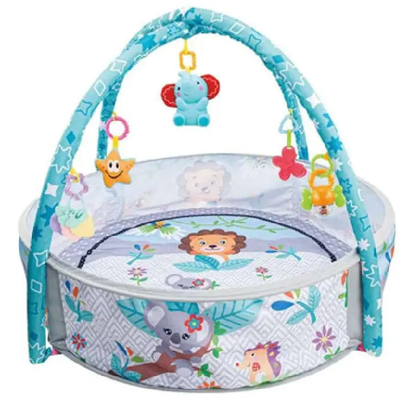 Dotată cu o arcadă de jucării suspendate, bile colorate și un design plin de culoare cu animale prietenoase, salteaua este concepută pentru a stimula curiozitatea, coordonarea și abilitățile motorii.