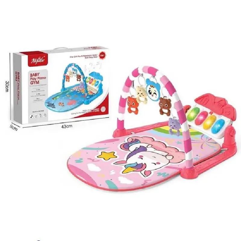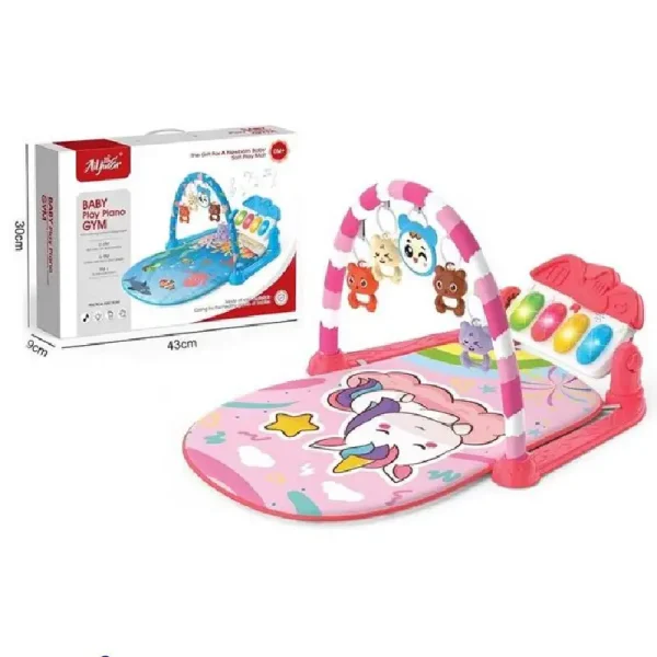 Aceasta este o saltea de activități pentru bebeluși, cu o tematică adorabilă de unicorn și culori pastelate care atrag atenția celor mici.