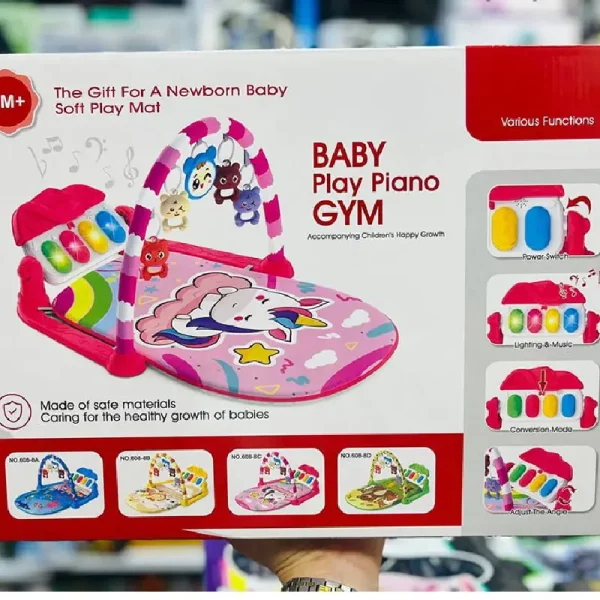 - Dezvoltare Motorie: Bebelușul poate lovi pianul cu piciorușele, ajutând la întărirea mușchilor și coordonării.