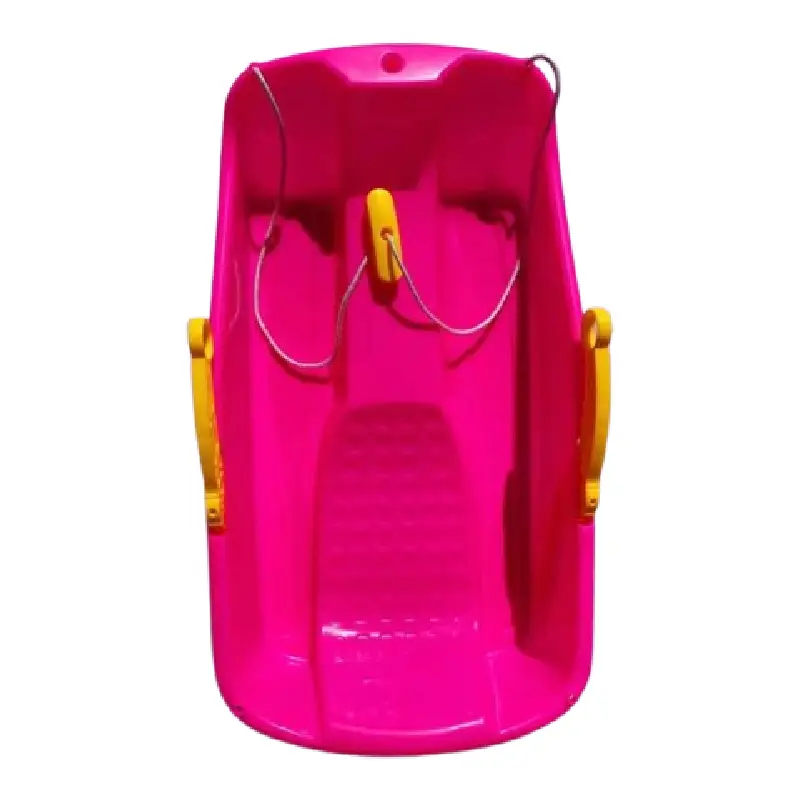 Transformă iarna în aventură cu Sania Roz pentru copii! Realizată din material rezistent, cu frâne laterale galbene pentru control și sfoară pentru tragere ușoară.