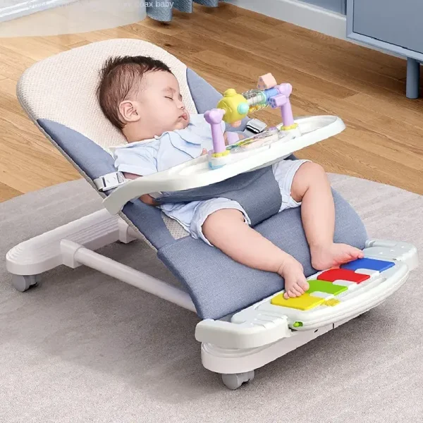 - Confort și siguranță: Scaunul balansoar este proiectat pentru a fi confortabil pentru bebeluș și pentru a-i oferi susținere adecvată. Centurile de siguranță mențin copilul în siguranță în timpul utilizării.