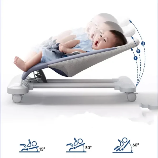 Cu funcția de reglare a unghiului pe 3 niveluri, puteți regla scaunul la trei unghiuri diferite, asigurând confortul bebelușului în orice moment.