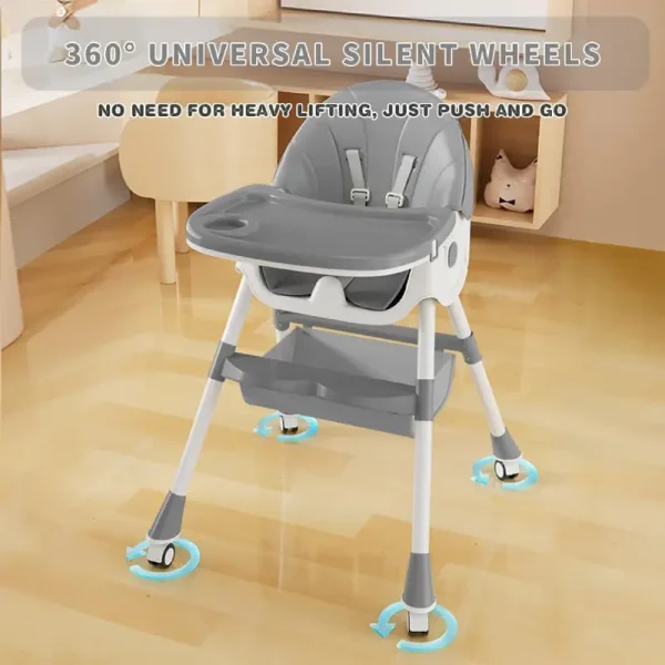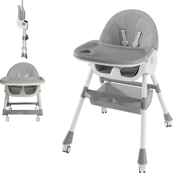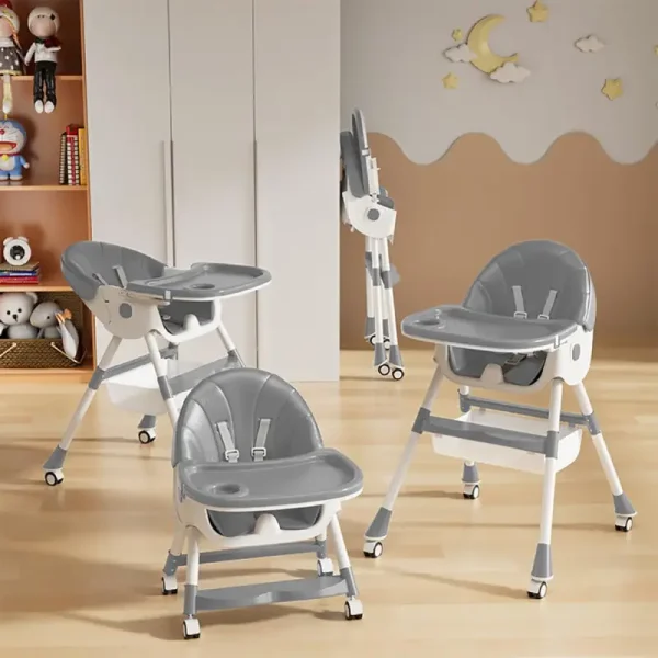 Scaun de Masă Gri Multifuncțional 5 în 1 pentru Bebeluși – Confort și Versatilitate
