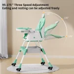 Scaunul de masă este conceput pentru a oferi maximum de confort și suport copilului tău. Spătarul poate fi reglat pentru a se adapta diferitelor poziții – de la somn la mese. De asemenea, înălțimea este ajustabilă, ceea ce îl face potrivit pentru orice masă sau context. Suportul pentru picioare este, de asemenea, reglabil, asigurând o poziție corectă și confortabilă.