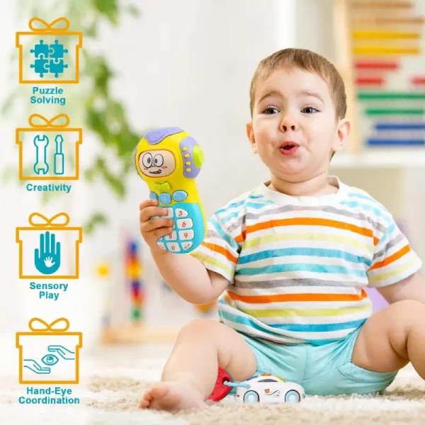 Set 2 Jucarii Muzicale Interactive cu Lumini – Telefon și Cheite Muzicale pentru Micuțul Tău!