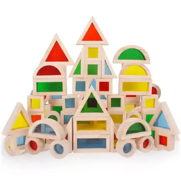 Set 40 Piese Cuburi Curcubeu Lemn Transparente