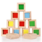 Set 40 Piese Cuburi Curcubeu Lemn Transparente sunt piese masive din lemn cu insertii de plexiglas,cu diverse culori.