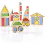 Cu acest set de cuburi curcubeu din lemn, jocul nu se termină niciodată, iar învățarea continuă.