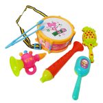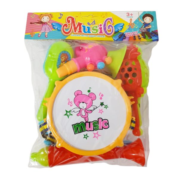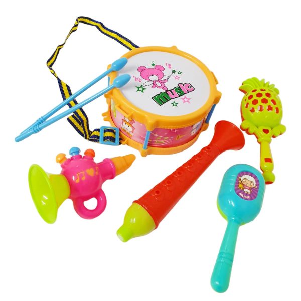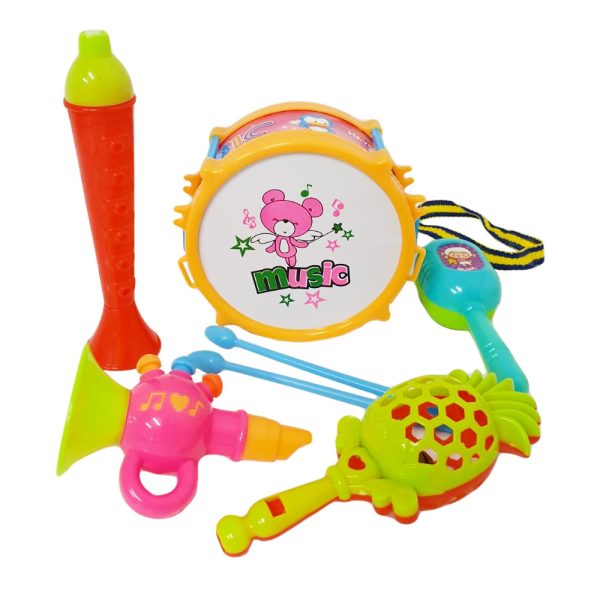 Cele 5 instrumente diverse : toba,flaut,fluier,zornaitoare si maracas sunt perfecte pentru muzicianul in devenire.