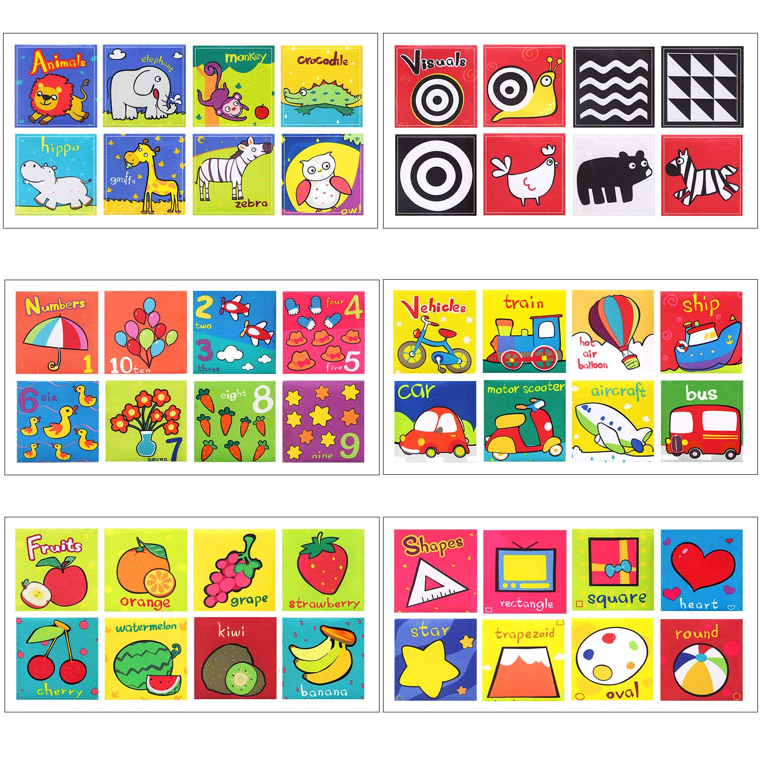 Set 6 Carticele contin: numere, fructe, animalute, vehicule, forme si imagini.