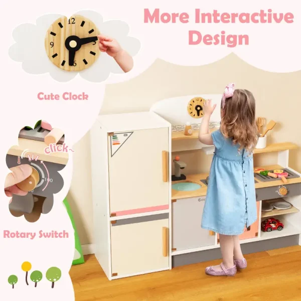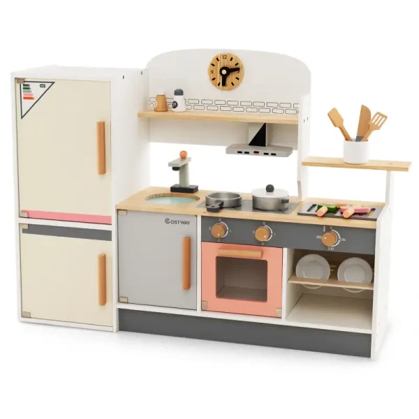 Set Bucatarie si Frigider de Jucarie din Lemn este multifunctionala si bogat echipata.