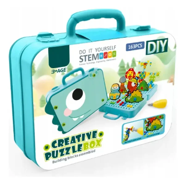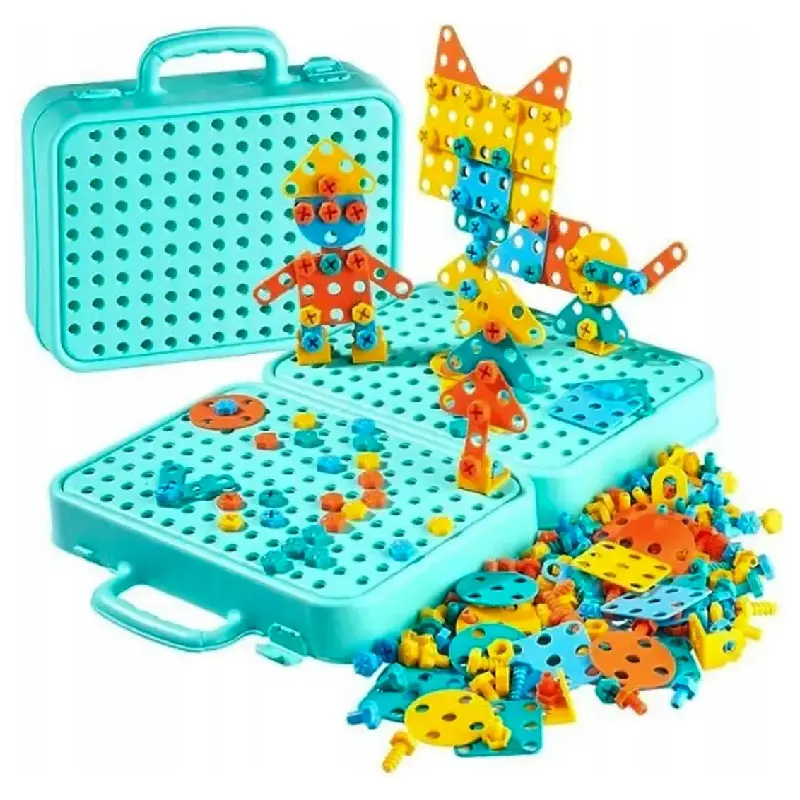 Acest set de construcție cu bormașină electrică și piese colorate îi invită pe copii într-o lume plină de creativitate și imaginație.