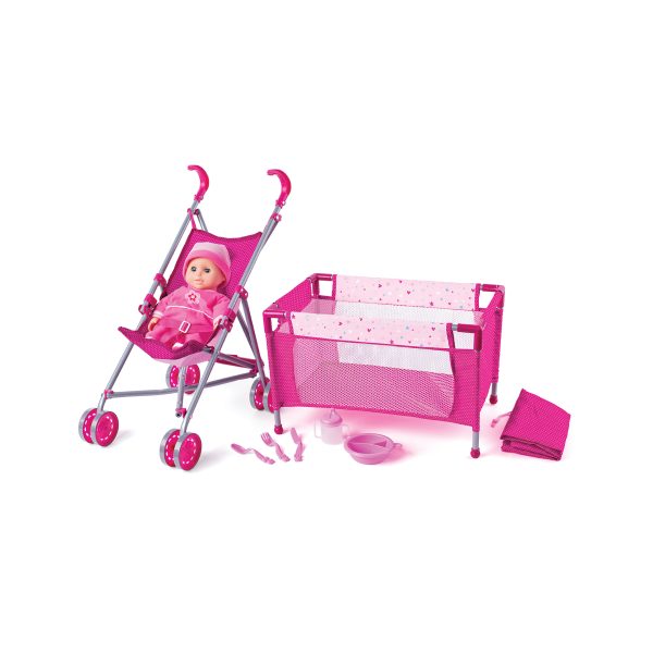Descoperă magia jocului cu Set cu papusa, carucior, pat si accesorii!