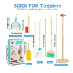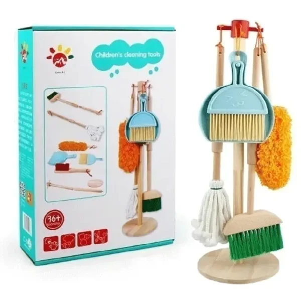Transformă curățenia într-o activitate plină de joacă și învățare cu acest Set de Curățenie din Lemn pentru Copii – 6 în 1!