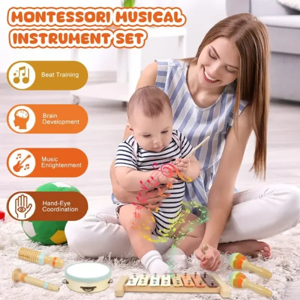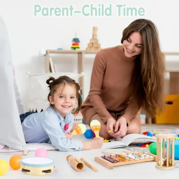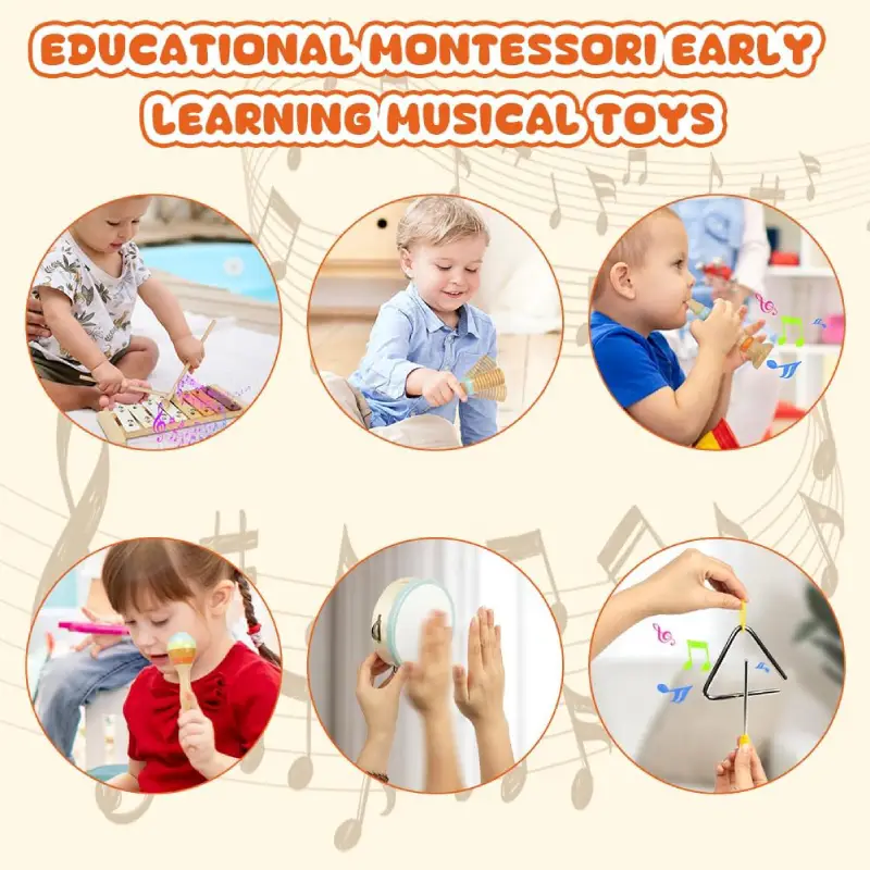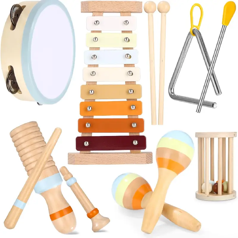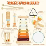 Acest set de instrumente muzicale din lemn este perfect pentru dezvoltarea abilităților muzicale ale copiilor.