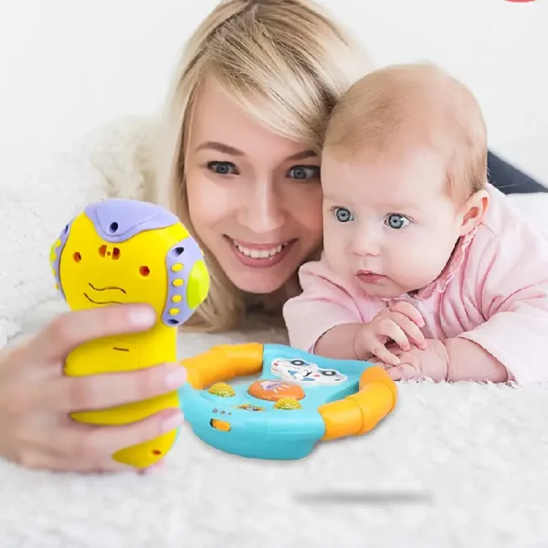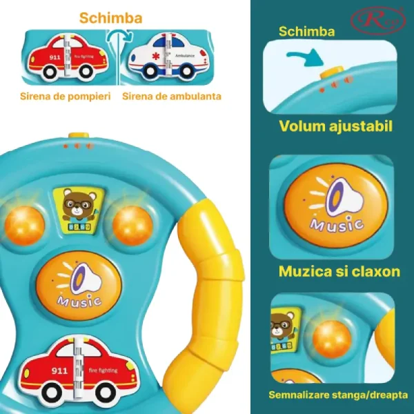 - Volan muzical cu efecte luminoase – Perfect pentru micii șoferi în devenire! Volanul scoate sunete distractive și luminează, transformând jocul într-o adevărată aventură.
