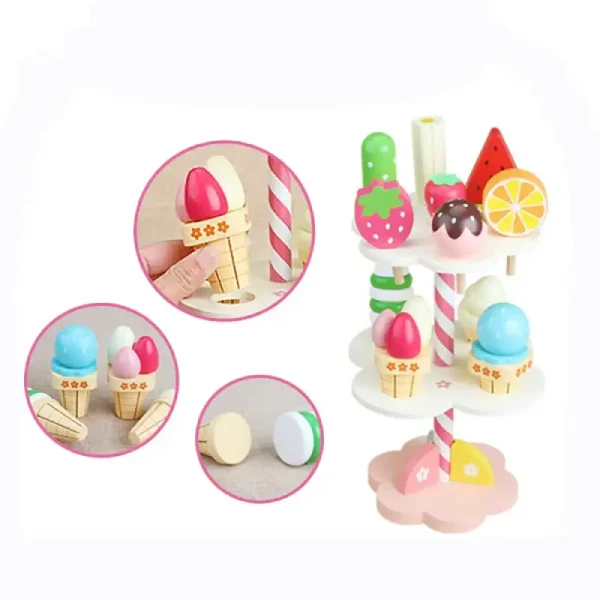 Descoperă bucuria învățării prin joc cu Set Jucarii Lemn Înghețate și Dulciuri pe Suport Etajat!