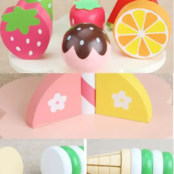 Oferă-i copilului tău bucuria jocului cu acest set de jucării din lemn în formă de înghețate și dulciuri!