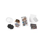 Setul contine trei placi de margele de calcat hexagonal si margele de calcat intr-un amestec de culori care se potriveste cu tema. Prin asezarea modelelor pe cardul sablon mare, puteti realiza cu usurinta toate placile de margele de calcat. Pe langa margele de calcat, setul contine si doua placi de spuma si autocolante tematice pentru crearea placilor foto. Aranjand impreuna placile de margele termoformate hexagonale si placile foto, puteti crea un mozaic unic si modern.