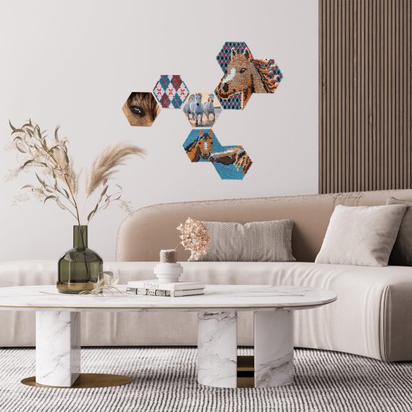 Amestecul unic de placi de margele hexagonale de casa, combinate cu placi foto, creeaza un mozaic frumos si modern pentru casa. Aranjati placile dupa cum doriti. Mozaicul poate fi realizat pentru a se potrivi cu orice perete, fie ca este un hol ingust sau un perete larg deasupra canapelei.