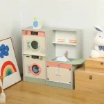 Descoperă setul de joacă din lemn cu mașină de spălat, uscător și chiuvetă pentru copii!