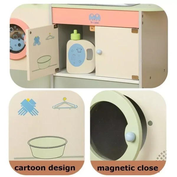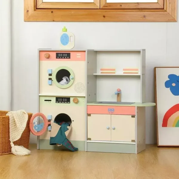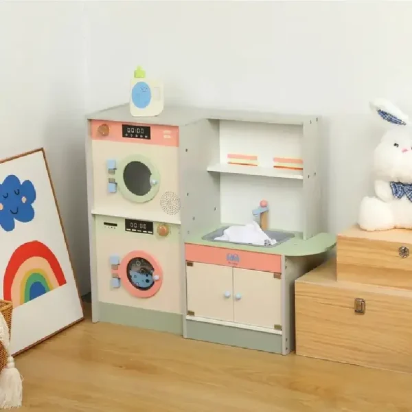 Set Masina de Spalat Uscator si Chiuveta din Lemn – Joc de Rol Educațional pentru Copii!