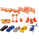 Setul vine cu 4 mașini colorate și un elicopter, astfel încât copiii să poată recrea scene de trafic, curse sau misiuni de salvare.