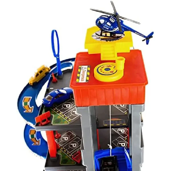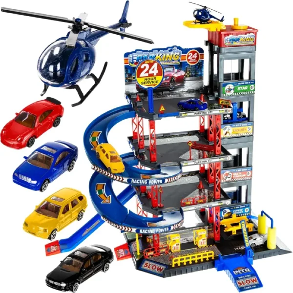 Set Parcare Auto cu Etaje și Accesorii pentru Copii – Garaj cu Mașini și Elicopter pentru Copii