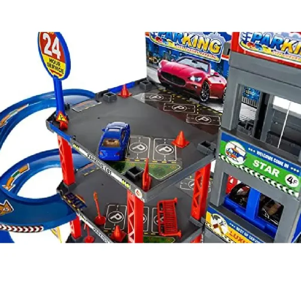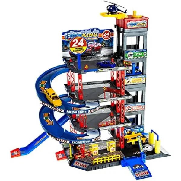 Acest set de parcare auto cu etaje este o jucărie interactivă și captivantă pentru micii pasionați de mașini și vehicule.