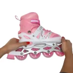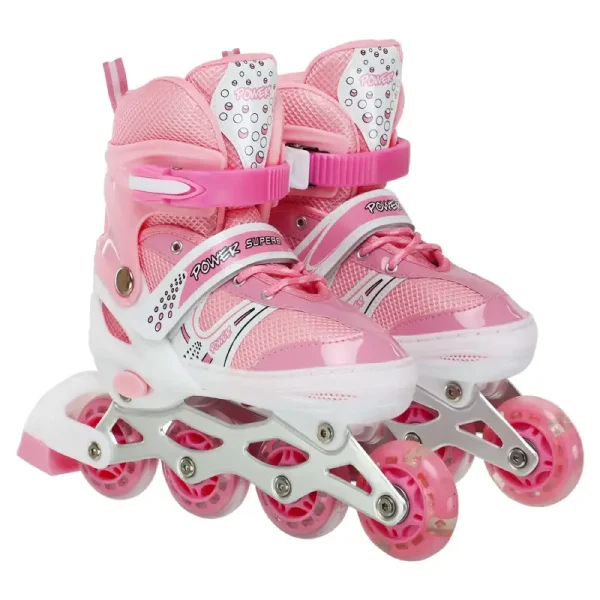 - Rolele sunt reglabile pentru a se adapta creșterii piciorului copilului, asigurând o utilizare pe termen lung. Sunt ușor de ajustat și oferă confort optim și suport pentru glezne.