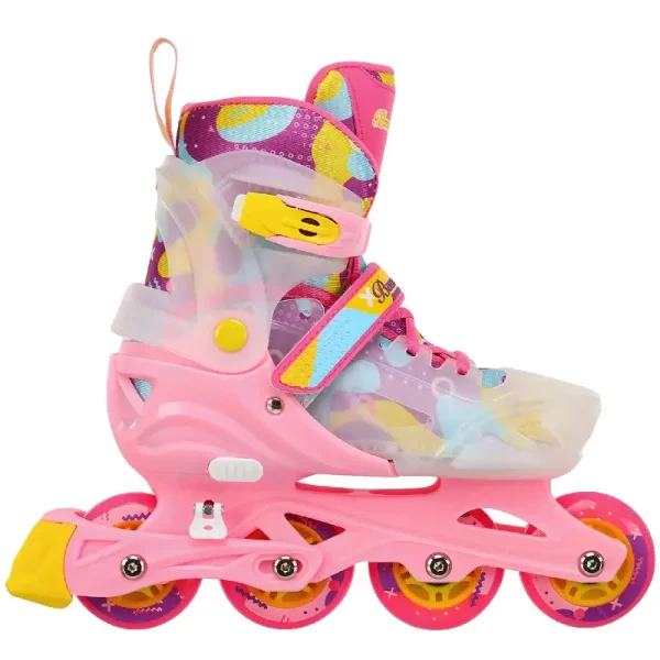 Acest set complet, format din role reglabile, cască și protecții pentru genunchi, coate și palme, este alegerea ideală pentru copiii care vor să descopere lumea pe roți.