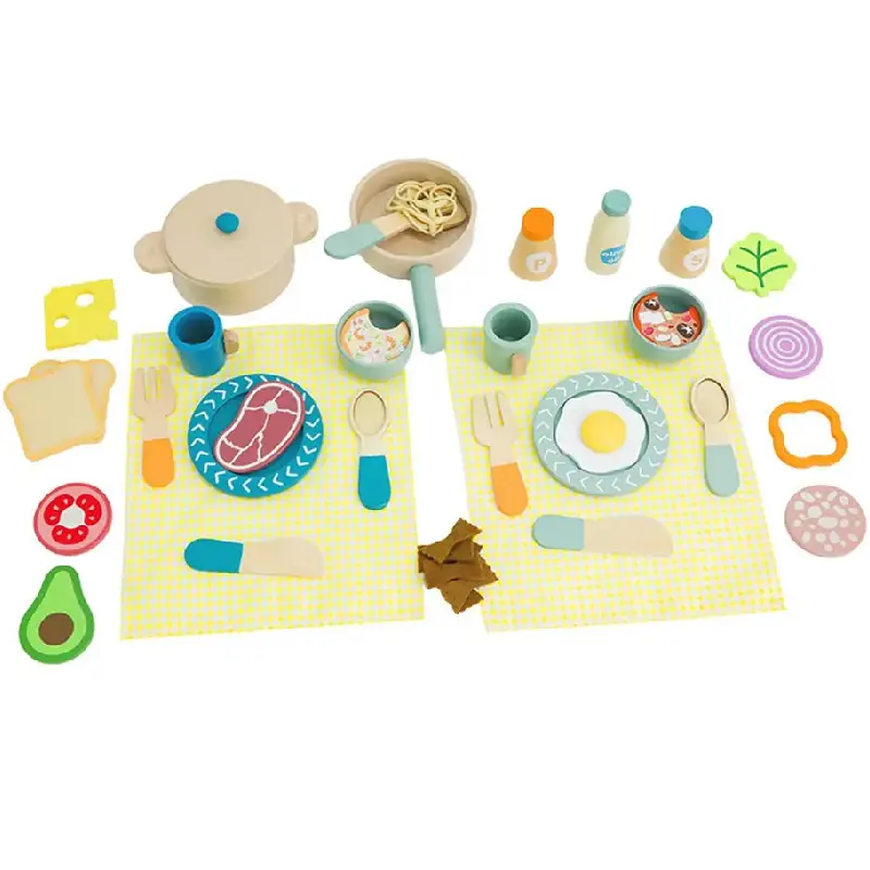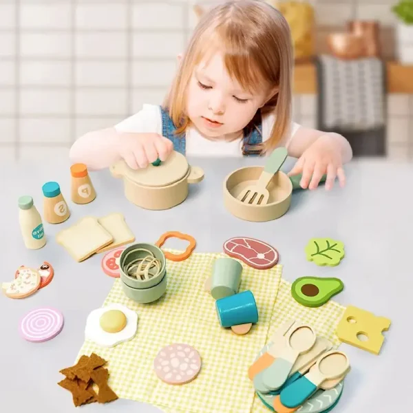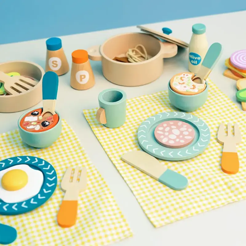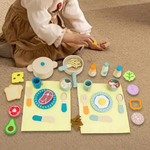 Set Vesela si Mancare de Jucarie din Lemn Caratoys – Joc educativ pentru micii bucătari