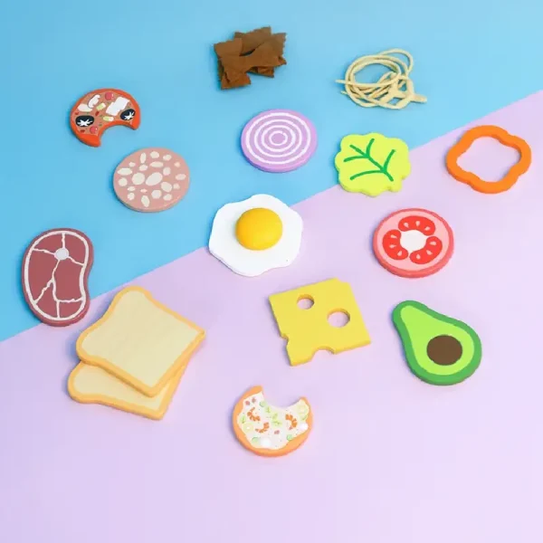✔ Felii de legume, carne, ouă, pâine, avocado, brânză, condimente