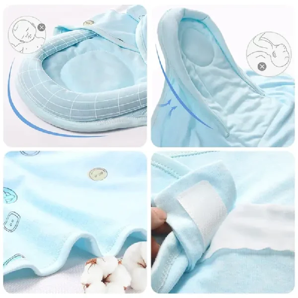 Asigură-te că fiecare moment de înfășat devine un moment plin de tandrețe pentru bebelușul tău cu acest sistem inovator de înfășat tip păturica din bumbac bleu.