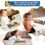 - Activități interactive: Fiecare element de pe Busy Board are o activitate specifică. Aceste activități implică copiii și îi provoacă să rezolve problemele.