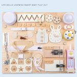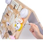 Tabla Educativa Montessori 2in1 Lemn este ideal conceputa pentru a stimula curiozitatea si dexteritatea copilului. De asemenea,va dezvolta gandirea logica si perseverenta. Tabla are doua fete diferite. Una din fete este magnetica si se poate scrie cu markerul. Pe cealalta fata se afla diferite jocuri de dexteritate,indemanare si educatie. Este fabricata din lemn robust si este vopsita cu vopsea non-toxica,pe baza de apa. Marginile sunt netede si fara colturi taioase,fiind sigure pentru copii. Elementele incluse sunt: