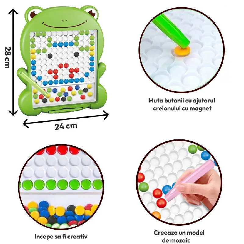 Tabla Magnetica Broscuta cu Joc Mozaic 20 Modele – Învățare prin Joacă, Creativitate și Distracție pentru Copii | CaraToys