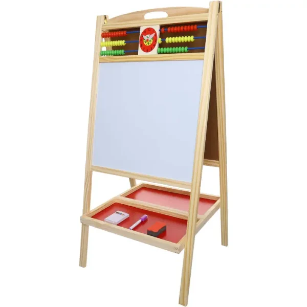Abacul de pe o parte a tablei încurajează dezvoltarea abilităților matematice, învățarea numerelor și a conceptelor de adunare și scădere într-un mod interactiv și distractiv.