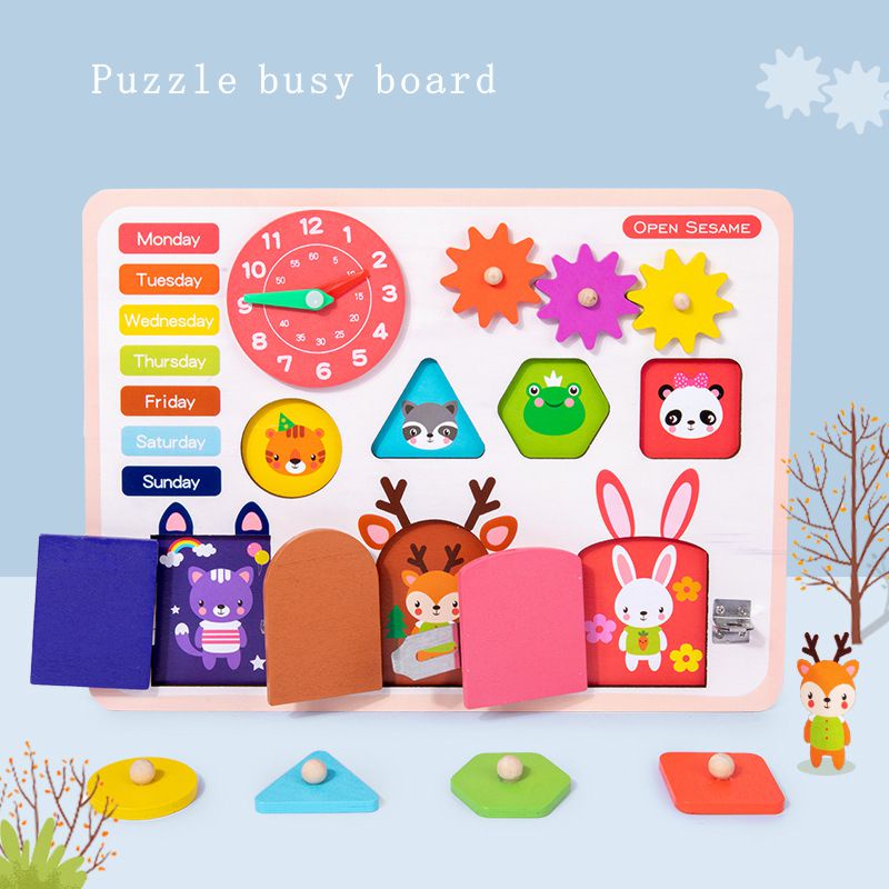 Tabla Senzoriala Montessori Activitati Puzzle Ceas si Calendar