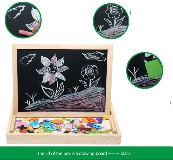 Tablita magnetica cu doua fete puzzle 3D si desen