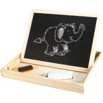 Pe partea neagra poate sa scrie cu una din cele trei crete sau sa deseneze dupa bunul plac, si la fel ca mai sus se poate sterge cu buretele.