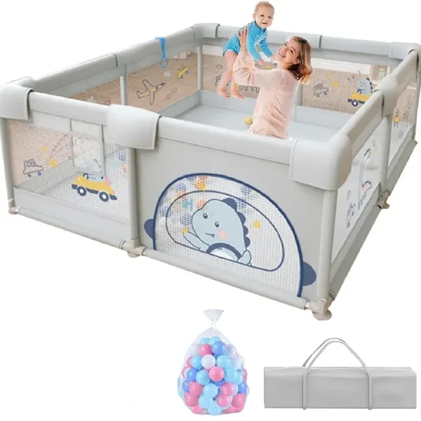 Țarc de Joacă 180×150 cu 60 Bile pentru Bebeluși – Spațiu Sigur de Joacă, Design Modern, Plasă de Siguranță, Ușor de Montat